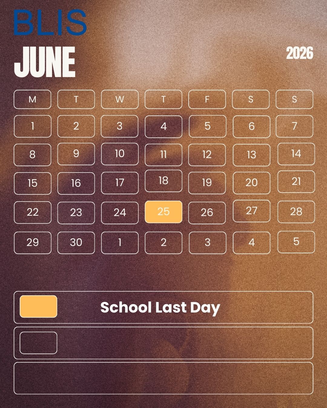 Home About Us Welcome The School Board Our Administrative Team Mission&Vision Academics Elementary School Middle School High School Admissions Admission Process Admissions Assessment Apply for Admission Activities Student Led Activities Athletics Duke of Edinburgh After School Activities Employment Working@BLIS A Career@BLIS Job Application Parent 2025/2026 Lunch Menu K12net Toddle Dress Code Car Policy Data Protection English Türkçe BLIS Calendar 2025-2026 Calendar November 2025 December 2025 January 2026 February 2026 March 2026 April 2026 May 2026 June 2026